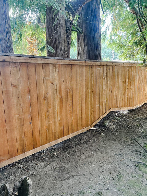 Fence replacement in Gig Harbor. We did a full panel style cedar fence with continuous 2x6 pressure treated top cap.