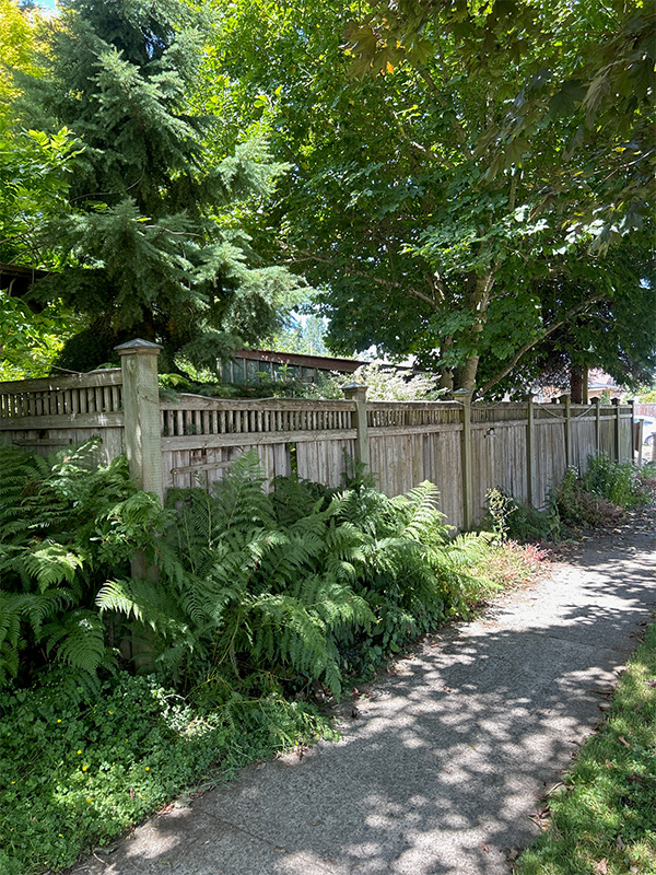 Fence panel replacement in Tacoma. We kept the original 6x6 posts and built new 6' full panel style cedar fence with arched gate. And finished off with an oil based semi-transparent stain.