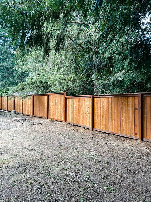 Fence replacement in Gig Harbor. We did a full panel style cedar fence with continuous 2x6 pressure treated top cap.